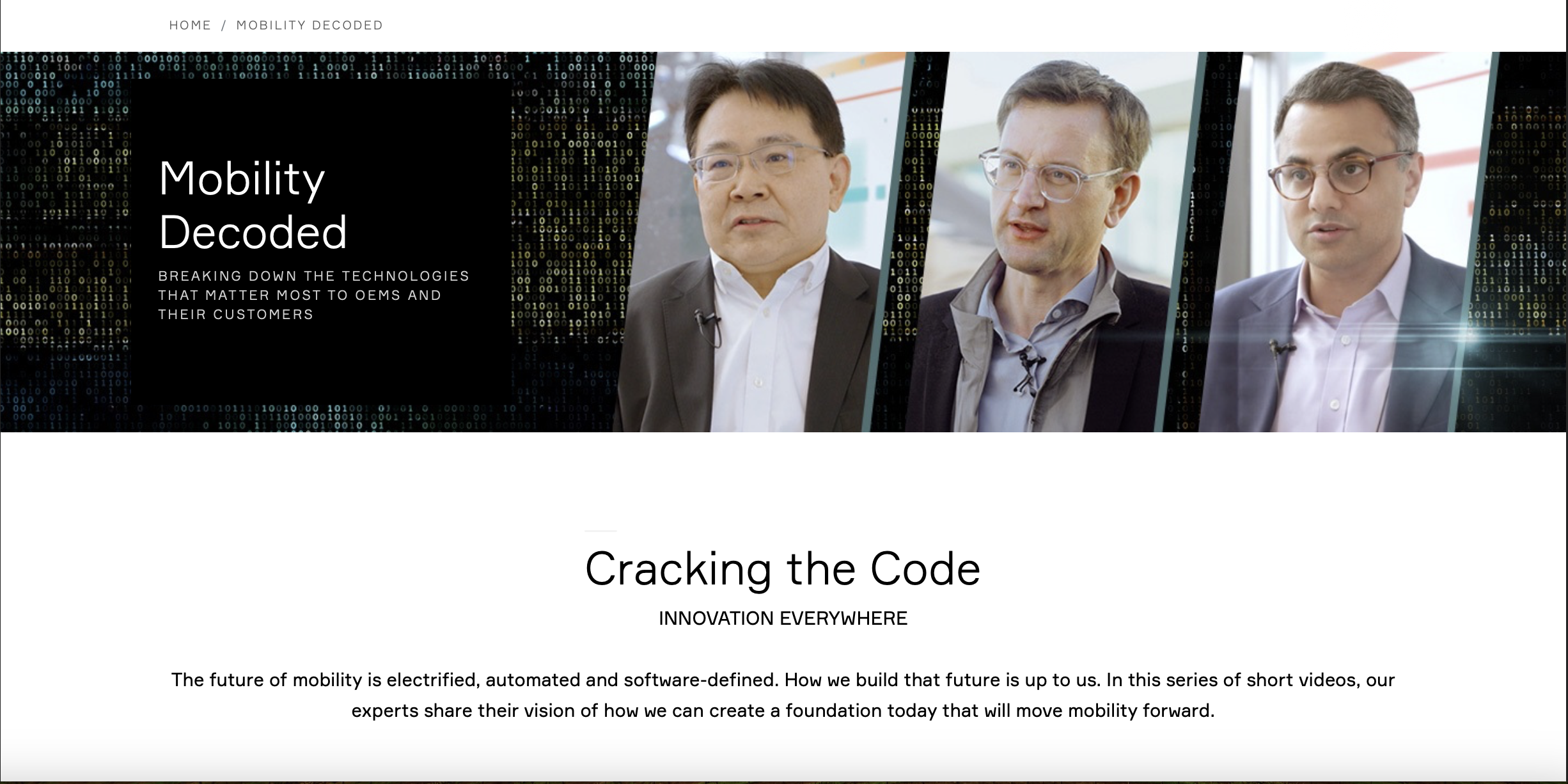 The future of mobility is electrified, automated and software-defined. How we build that future is up to us. In this series of short videos, our experts share their vision of how we can create a foundation today that will move mobility forward.